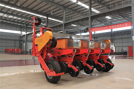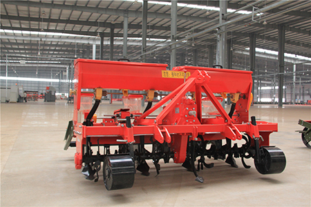 該機(jī)可以再也米稈直立地、秸稈還田地、小麥高茬浮稈地、深翻地等不同前茬條件下,一次性完成滅茬稈、開溝、播種、施肥、覆土、鎮(zhèn)壓等多道工藝。配置指甲式的玉米精量排種器與勺式的相比在同一質(zhì)量下由每小時(shí)前進(jìn)5km提高到8km。底盤采用變速旋耕機(jī),可根據(jù)拖拉機(jī)不通的前進(jìn)速度和當(dāng)?shù)氐霓r(nóng)藝要求、土質(zhì)差別,靈活變換三種刀軸轉(zhuǎn)速,徹底解決了拖拉機(jī)跑的快效果差,跑的慢了效益差的問題。