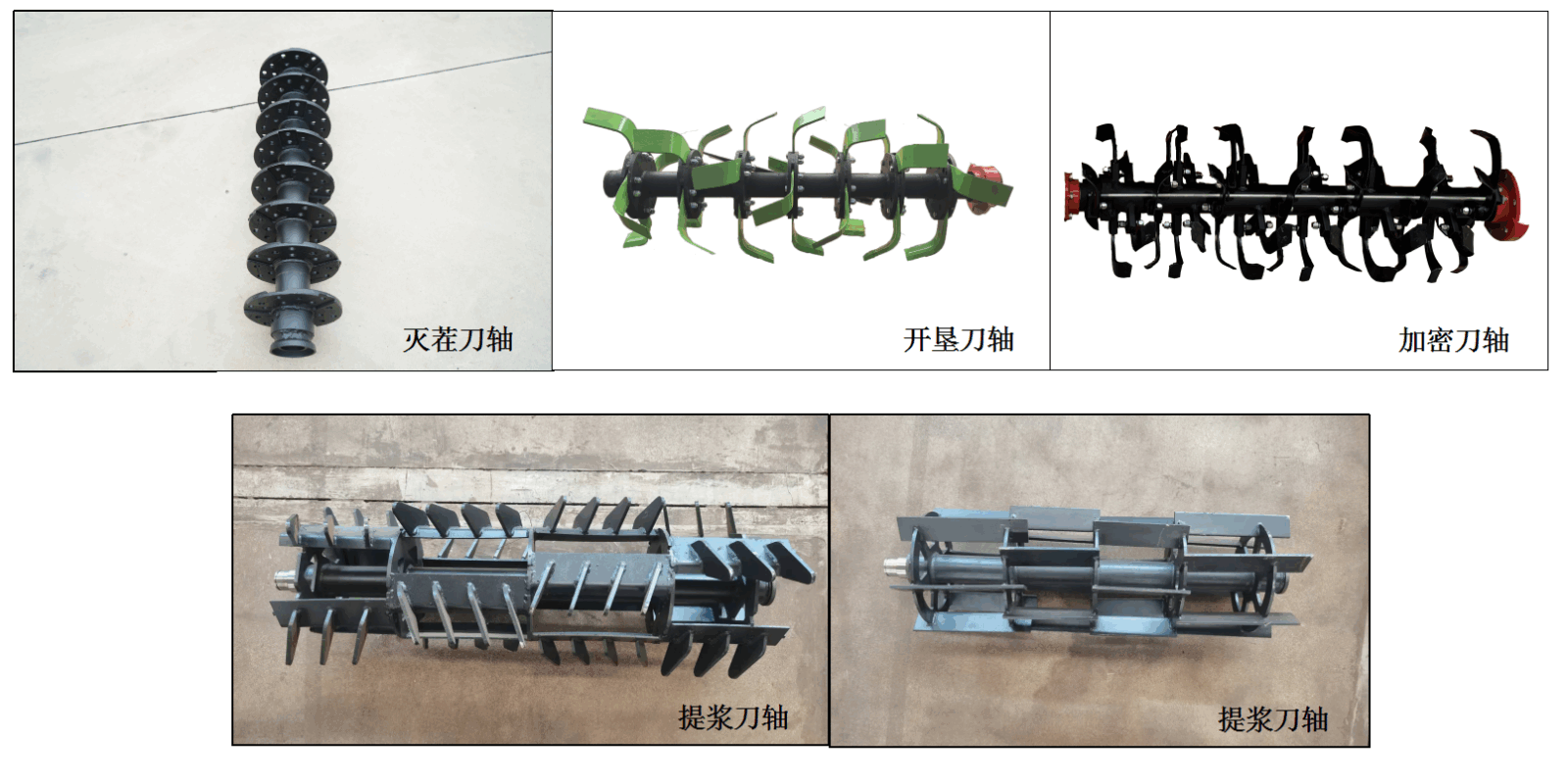 可根據(jù)水旱田及農(nóng)藝需要配制:滅茬刀軸、開墾刀軸、提漿刀軸、加密刀軸