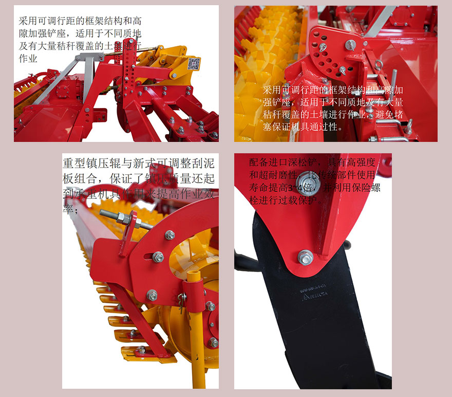 8、整機(jī)入土角度優(yōu)化設(shè)計(jì),可調(diào)限深機(jī)構(gòu),作業(yè)穩(wěn)定、耕深穩(wěn)定性90.6%以上;