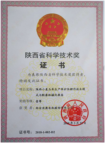 日前,全省科技創(chuàng)新大會暨科學(xué)技術(shù)獎勵大會在西安隆重召開,省委書記胡和平出席會議并講話,省長劉國中主持會議,會議表彰了2018年度省科學(xué)技術(shù)獎獲獎項(xiàng)目,并向最高成就獎及一等獎獲獎?wù)哳C發(fā)了獎勵證書。亞澳農(nóng)機(jī)和西北農(nóng)林科技大學(xué)合作研發(fā)的“陜西小麥玉米生產(chǎn)保護(hù)性耕作技術(shù)模式與配套機(jī)械化裝備”項(xiàng)目成果榮獲省科技進(jìn)步一等獎。