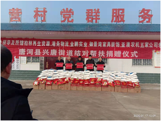 捐贈(zèng)儀式上產(chǎn)業(yè)集聚區(qū)黨委書記劉清文、主任李國(guó)營(yíng)代表興唐街道黨委、政府向五家企業(yè)的義舉表示感謝。他指出,以亞澳農(nóng)機(jī)為首的這五家公司,在完成自身企業(yè)負(fù)責(zé)包片貧困村脫貧的基礎(chǔ)上,還能再拿出現(xiàn)金3000元捐資扶貧,將自己的社會(huì)責(zé)任意識(shí),由助力脫貧攻堅(jiān),走向現(xiàn)在回饋社會(huì)。代表著我縣企業(yè)經(jīng)營(yíng)由起步走向成熟。他希望廣大困難群眾正確面對(duì)暫時(shí)的困難,樹立戰(zhàn)勝貧困、走出困境的信心和勇氣,發(fā)揚(yáng)自力更生、艱苦奮斗的精神,不等不靠,在黨委、政府和社會(huì)各界的支持和幫助下,以自身的努力和實(shí)干來化解生產(chǎn)、生活中的各種困難,為構(gòu)建美麗和諧的新唐河作出自己的貢獻(xiàn)。