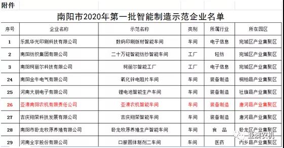 根據(jù)《河南省智能制造和工業(yè)互聯(lián)網(wǎng)發(fā)展三年行動計劃(2018—2020年)》(豫政〔2018〕14號)文件要求,南陽市篩選出的A類企業(yè)名單,是符合集聚區(qū)產(chǎn)業(yè)發(fā)展方向、資源利用效率高、質(zhì)量效益好的企業(yè),是轉(zhuǎn)型發(fā)展攻堅的引領力量,也是最有條件和能力實施智能化改造的先導群體。將作為河南省產(chǎn)業(yè)集聚區(qū)首批智能化改造推薦企業(yè)。