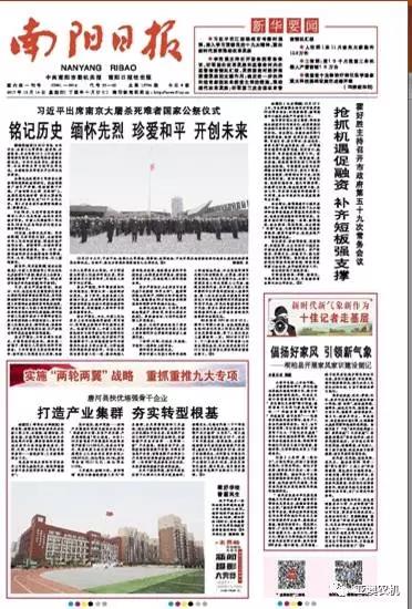 2017年 12月14日,南陽日?qǐng)?bào)頭版報(bào)道唐河產(chǎn)業(yè)發(fā)展,我公司榜上有名。以下為報(bào)道全文。